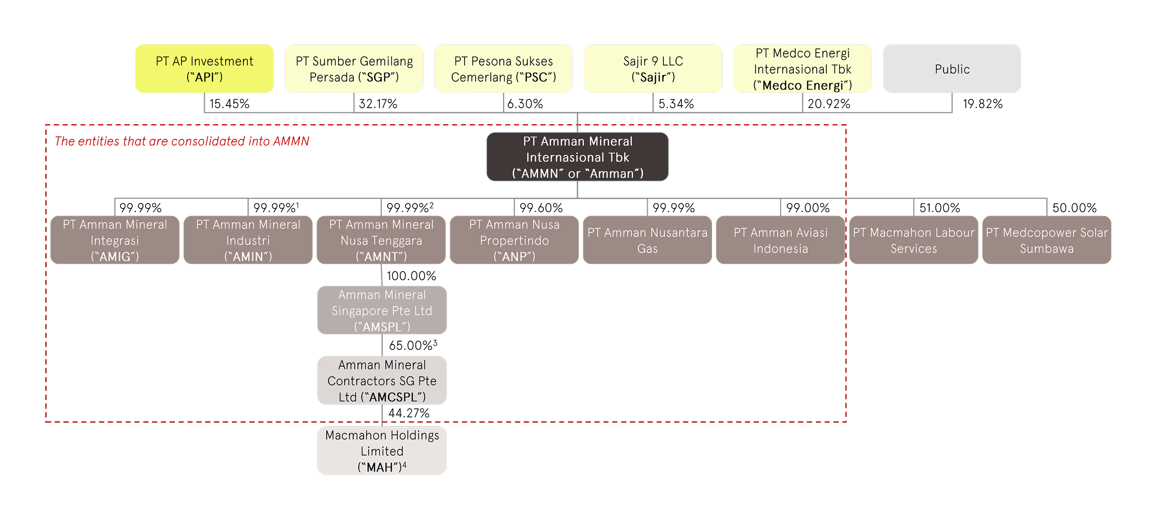 Source: Company information as of 30 September 2025 Note: Structure presented above is a simplified corporate structure and not exhaustive. 1. AMIN is 99.99% owned by AMMN and 0.01% by AMNT; 2. AMNT is 99.99% owned by AMMN and 0.01% by API; 3. AMCSPL is 65.00% owned by AMSPL and 35.00% by API; 4. MAH is listed on ASX.